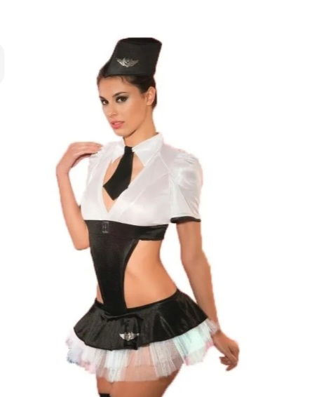 Eleva tu fantasía con nuestro disfraz de azafata de línea Premium, talle único, diseñado para ajustarse cómodamente y resaltar tus curvas. Con detalles refinados y sexys, este conjunto incluye vestido ceñido, cinturón y accesorios que completan un look irresistible. Ideal para juegos de rol, fiestas temáticas o noches especiales.